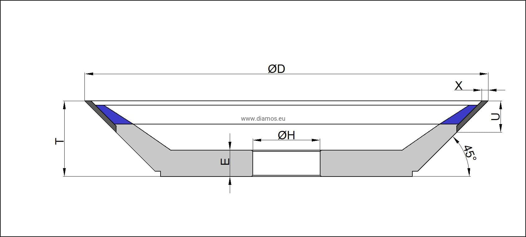 Ściernica diamentowa 12V9/45 Ø100x2x10x20 DIA91 C75